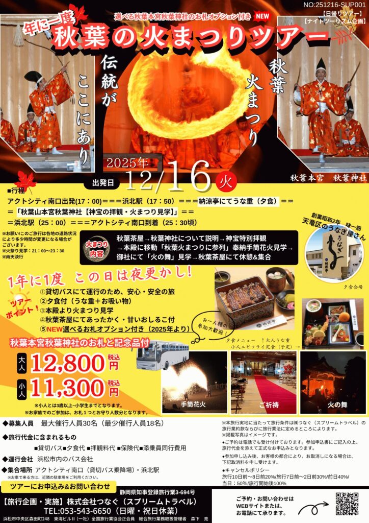 今年も「秋葉の火まつりツアー2025」を募集開始いたしました。
